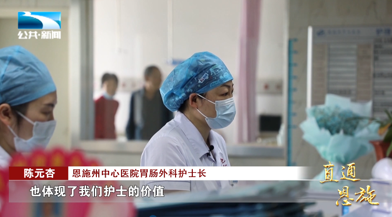 恩施州中心医院胃肠外科护士长 陈元杏:“内心还是很高兴,你的工作得到他的认可,也体现了我们护士的价值,但是更多的觉得是一种压力和责任,我觉得我们护士不仅仅是能够打针发药,我们一样可以做一些更专业的事情。”
