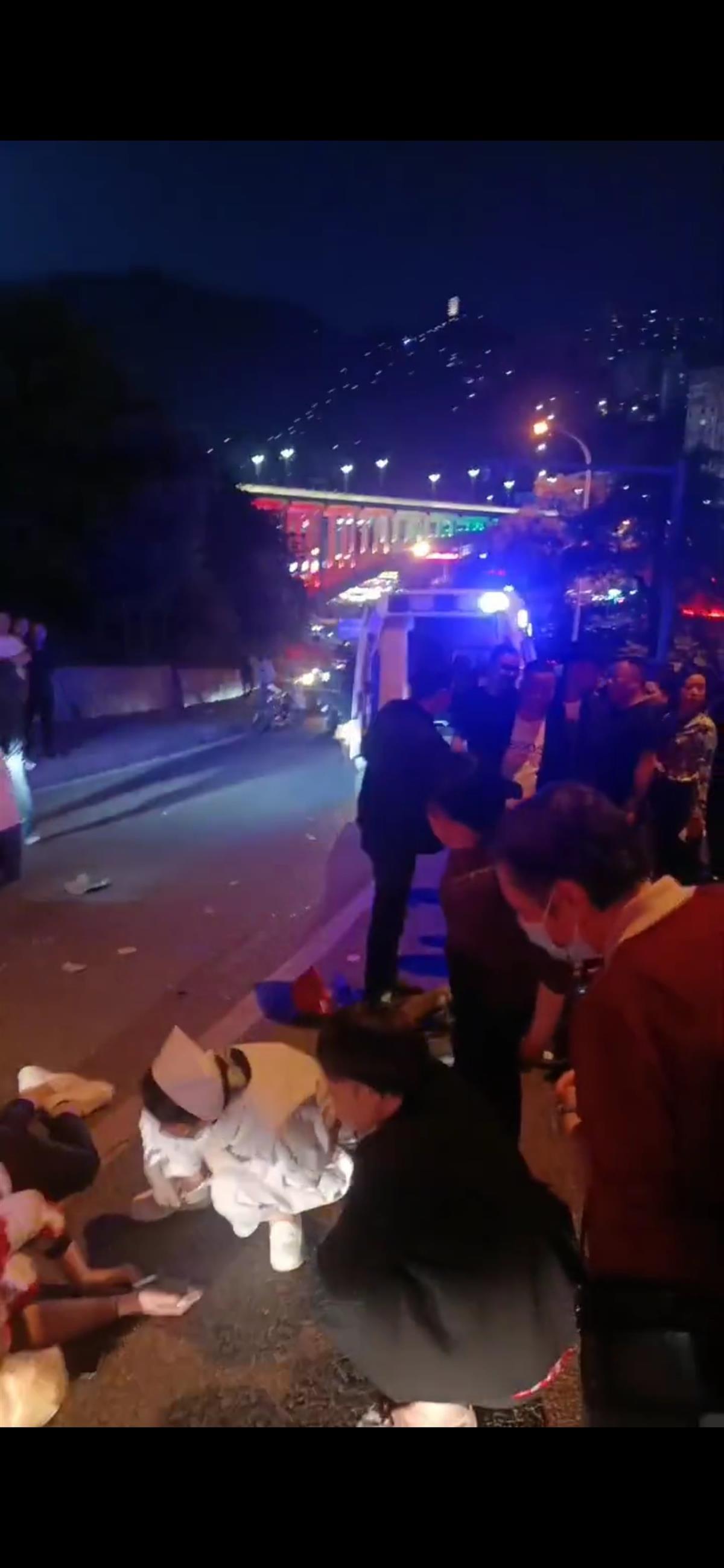 5月16日晚近8时,重庆奉节永安街少陵支路上,一辆黑色轿车在路上连撞多辆摩托车,导致多人受伤。