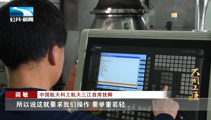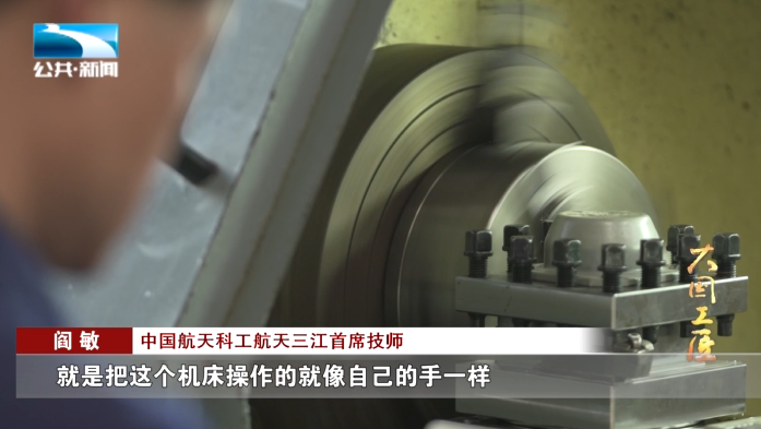 中国航天科工航天三江首席技师 阎敏:“就是把这个机床操作的就像自己的手一样,就是我们想让它走到哪儿,它就走到哪儿。可以这么说,就是一个‘人机合一’的一个状态。”