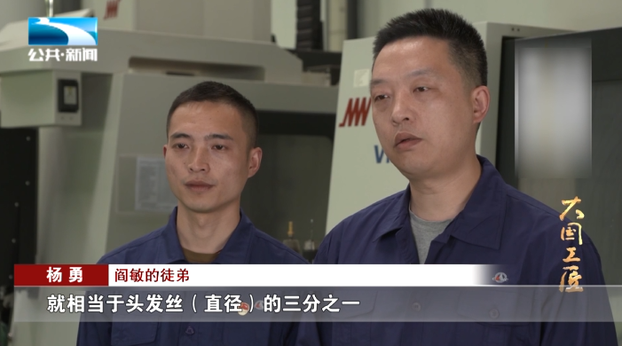 阎敏的徒弟 杨勇:“0.005(毫米)它是个什么概念呢?就相当于头发丝(直径)的三分之一。把它加工出来,保证它的尺寸精度,而且不是一台,是成百上千台的这种尺寸精度。所以在我们业内,他有个雅号,叫‘咽喉’主刀师。”