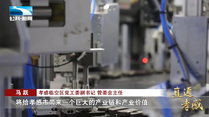 孝感临空区党工委副书记、管委会主任 马跃:“在未来的5年可以达到1000亿的产值,这个产业链链条会拉长到5000亿,将给孝感市带来一个巨大的产业链和产业价值。”