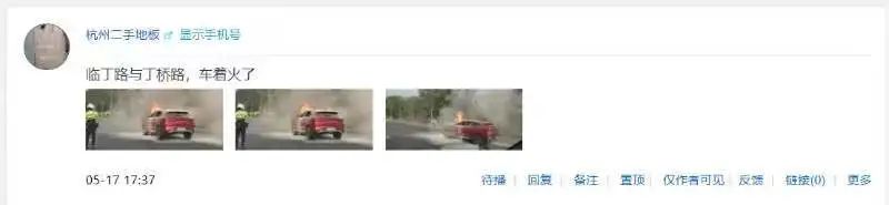 今天下午五点半左右,吧友爆料:杭州临丁路和丁桥路附近,有车着火了!
