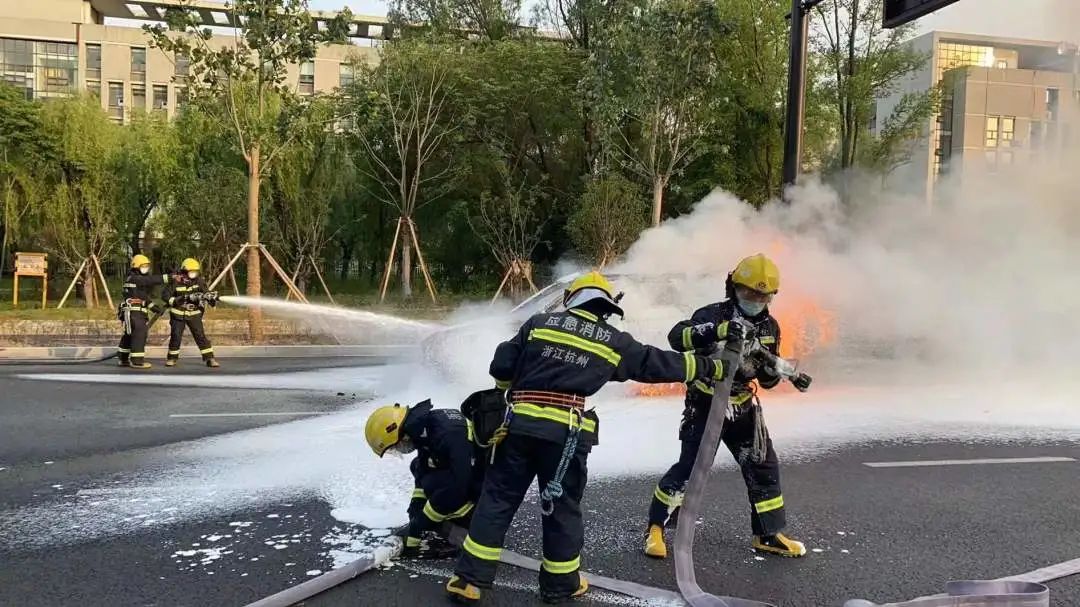17点40分,半山消防站到达现场,发现是一辆小型私家车正在剧烈燃烧,车内无人员被困。情况紧急又正值下班晚高峰,指挥员立即下令头车铺设好水带干线,出两支水枪对火势进行控制。同时对现场进行警戒,防止来往车辆对救援人员造成意外伤害。