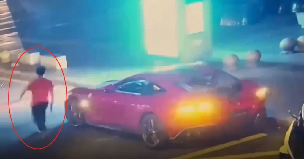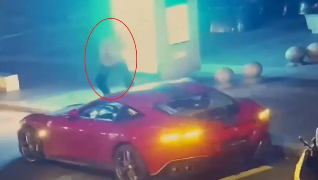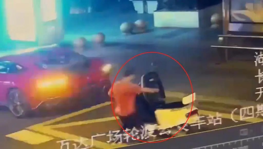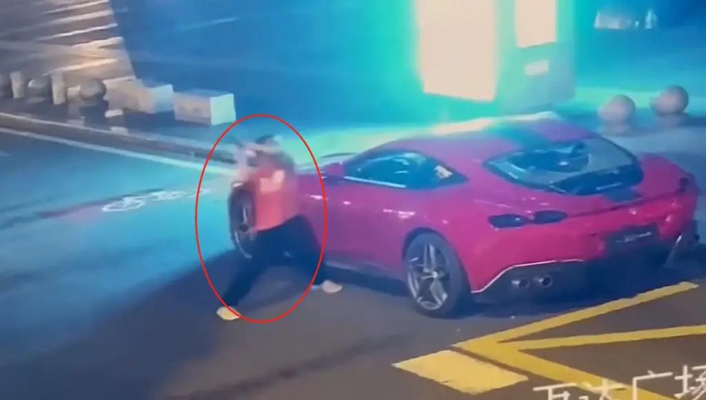 监控视频显示,5月11日凌晨 2 时 49 分,一名身着橘红色衣服的男子,拿起手中的工具对着一辆红色法拉利车辆的左车窗猛砸,车窗玻璃被砸碎后,他又走到法拉利右侧,站上引擎盖,双手举起工具猛砸车前窗玻璃。最后,该男子将工具放进停在法拉利后面的一辆黄色电动车车座里,然后骑电动车离开。