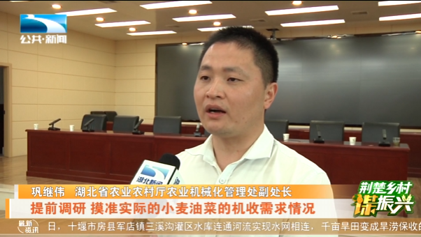 湖北省农业农村厅农业机械化管理处副处长 巩继伟:“挖掘自身潜力,依托农机专业合作社,农机大户提前调研,摸准实际的小麦油菜的机收需求情况,以新型农机经营主体为重点,开展本区域内的作业服务,同时利用外力,提供气象服务,还有供需指导服务。”