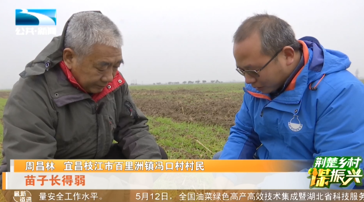 中化现代农业公司宜昌分公司农艺师 严令:“近期湿度大了,苗子长得弱,加上天气温度低造成了冻害,后期需要补点肥料,并把地里的沟挖通。”