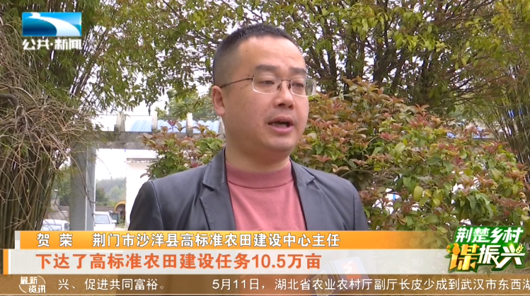 荆门市沙洋县高标准农田建设中心主任 贺荣:“2022年湖北省农业农村厅给我们沙洋县,下达了高标准农田建设任务10.5万亩,征求村和镇以及群众的意见来进行设计,把质量摆在第一位,要确保我们高标准农田发挥最大的效益。”