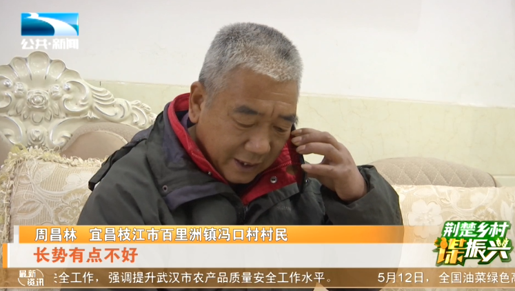 宜昌枝江市百里洲镇冯口村村民 周昌林:“严老师,我有一块田出现点问题,田的麦子有点儿发黄,长势有点不好,来帮我指导一下。”