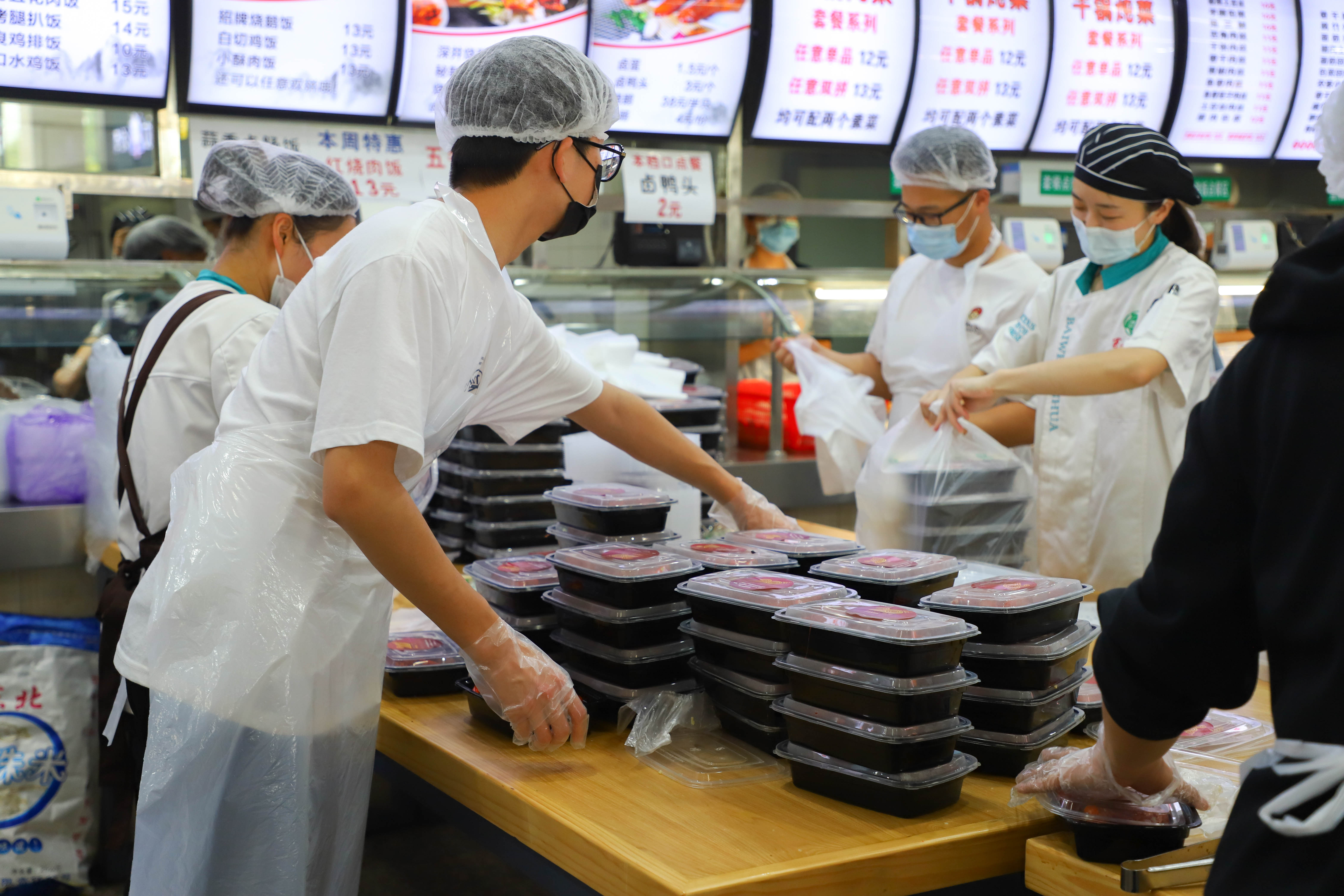 为了确保现场秩序井然并符合防疫要求,1.8万份校庆餐分5月21、23日两天发送,其中学生在21日发放,教职工在23日发放。食堂共设置了42个学生窗口、3个教职工窗口供广大师生领取,所有学生以班级为单位按照固定时间分批到食堂固定窗口领取,教职工凭餐券到食堂指定窗口领取。