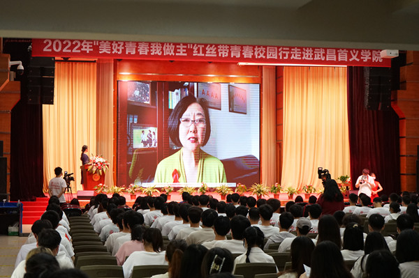 5月20日下午,由国家卫生健康委员会、教育部、共青团中央、国务院防治艾滋病工作委员会办公室指导,中国性病艾滋病防治协会、中国健康教育中心、中国疾病预防控制中心、共青团中央权益部、中国高等教育学会主办,湖北省健康委员会、湖北省教育厅、共青团湖北省委员会、湖北省防治艾滋病工作委员会办公室协办,武昌首义学院承办的“美好青春我做主”2022年红丝带青春校园行活动在该校首义礼堂隆重举行。本次活动通过线上直播方式同步设置了成学楼、嘉鱼校区两个分会场。
