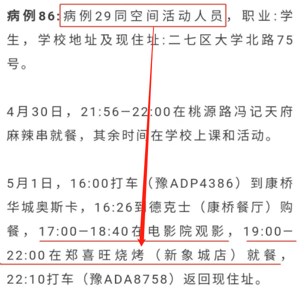 5月4日,郑州第29例病例的行动轨迹被公布。