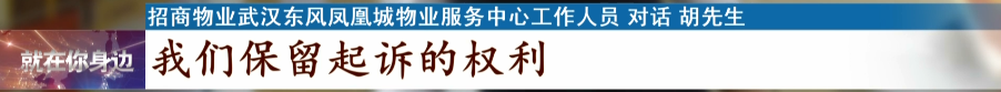 招商物业武汉东风凤凰城物业服务中心工作人员:“这个事情蛮好沟通,你打经视直播热线干吗呢?”武汉市民胡先生:“我昨天又不是没跟你们说。”招商物业武汉东风凤凰城物业服务中心工作人员:“你这样搞舆论的话,你这样就是对我们的侵权,我们保留起诉你的权利。”