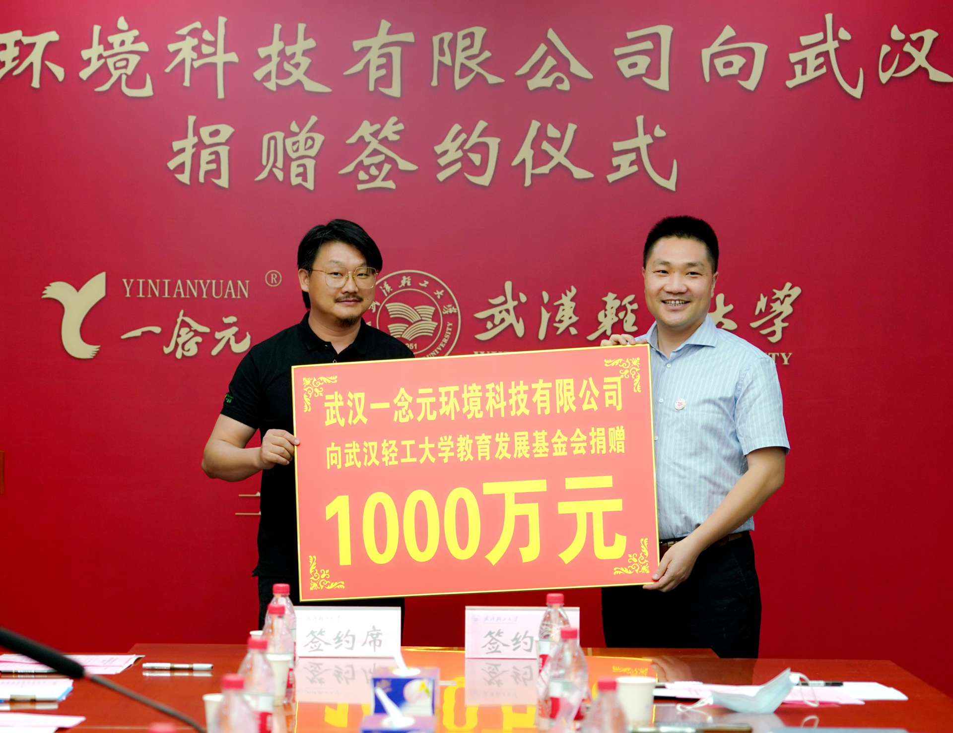 校友捐资情暖母校,反哺教育协同创新。5月23日下午,武汉一念元环境科技有限公司捐资建设武汉轻工大学“生态环境与低碳研究实验室”及设立“一念元企业奖学金”签约仪式在该校金银湖校区举行。武汉轻工大学杰出校友、武汉一念元环境科技有限公司董事长、水污染治理专家冯巍向母校捐赠1100万元,支持学校搭建平台、建立机制、孵化人才,用实际行动关心母校、回馈教育。
