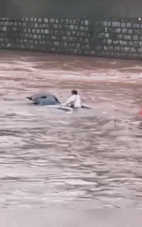 5月22日,云南昆明。富民县一女子驾车坠入螳螂川,落水车辆渐渐下沉,情况十分危急。