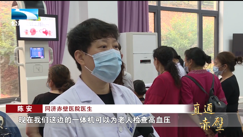 同济赤壁医院医生 陈安:“现在我们这边的一体机可以为老人检查高血压,再就是身高、体重、血氧、心电,还有血糖、尿酸、胆固醇都可以测的。还有一台骨密度机可以为老人测量骨质疏松,看他缺不缺钙。”