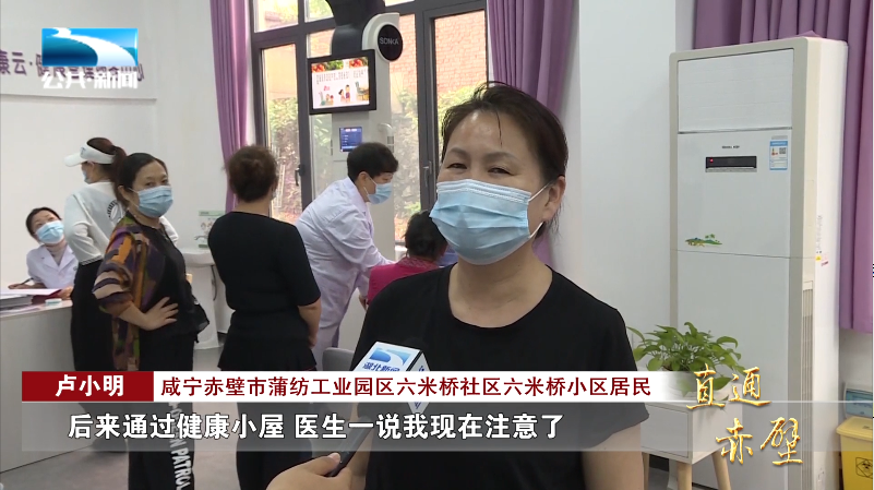 咸宁赤壁市蒲纺工业园区六米桥社区六米桥小区居民 卢小明:“因为口味偏重,重油重盐,所以血压有点高。后来通过健康小屋,医生一说,我就注意了。现在做到少油少盐,多运动,情况就好一些了。”