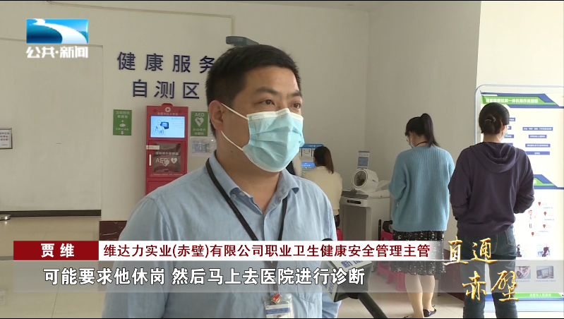 维达力实业(赤壁)有限公司职业卫生健康安全管理主管 贾维:“我们厂区对四千多名员工建立了健康档案,分级管理,分为高、中、低风险。像高风险人员我们要求他每周来测一次,连续测三天,如果还是高风险的话,可能要求他休岗,然后马上去医院进行诊断,拿复岗通知书来复岗,让大家在维达力上班能比较放心,确实把关爱员工,把健康企业落到实处。”