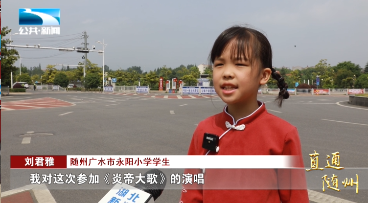 随州广水市永阳小学学生 刘君雅:“作为一个炎黄子孙,我对这次参加《炎帝大歌》的演唱,感到无比骄傲和兴奋。愿炎帝文化世代相传,愿炎黄子孙不忘文化始祖。”