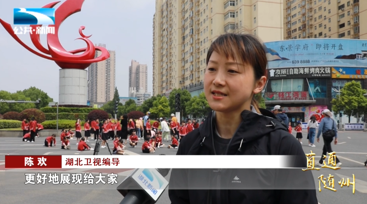 记者 孙旭:“在我身后是广水市市标‘翔舞’,湖北卫视寻根节直播摄制组正在这里预演直播环节,来自广水永阳小学的学生们正在认真彩排,希望用最好的状态迎接壬寅年世界华人炎帝故里寻根节直播。”