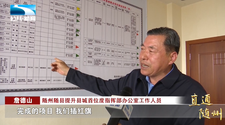 随县提升县城首位度指挥部办公室工作人员 詹德山:“完成的项目我们插红旗,正在推进的项目我们插绿旗,没有推进的项目我们插黄旗,有利于工作的快速推进。”