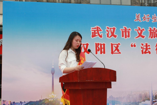 5月25日下午,武汉文旅普法轻骑兵汉阳行暨汉阳区“法律明白人”培养工程启动仪式、“美好生活·民法典相伴”主题宣传活动在汉阳区龙阳街道龙湖东岸社区知音茶城顺利举行。武汉市普法办主任李诗高,汉阳区委常委、区委宣传部部长王峰,区人大常委会副主任王鸿,市司法局、市文旅局、汉阳区依法治区委员会有关成员单位和汉阳区首批“法律明白人”代表及社区附近居民群众参加活动。