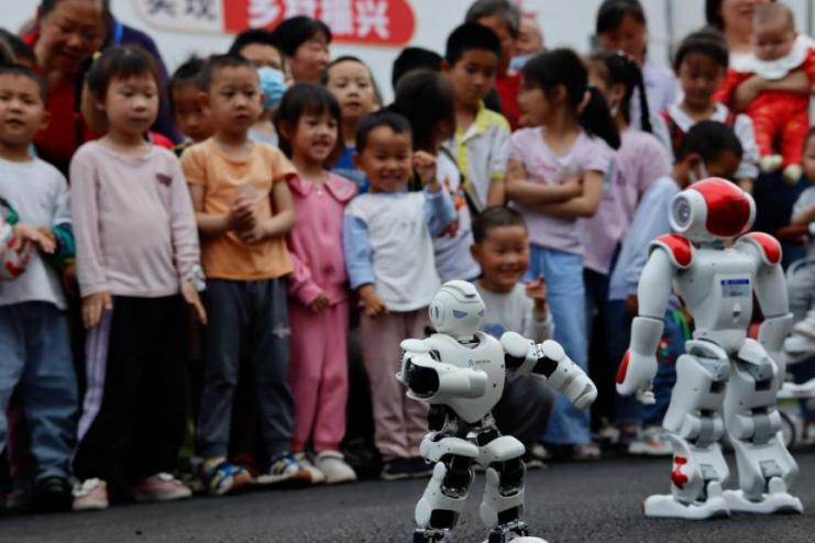 “机器人有这么多技能,太酷了!研究机器人的科学家更是厉害,我长大了也要做科学家,研究机器人。”一名堰头垸村的小朋友说道。