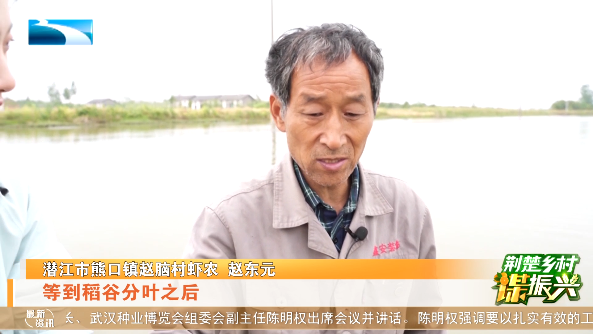 潜江市熊口镇赵脑村虾农 赵东元:“这把捞完在五月底,搞完之后我们就栽秧,等到稻谷分叶之后,我们就再放批苗子进去,再养第二季虾稻共作。”