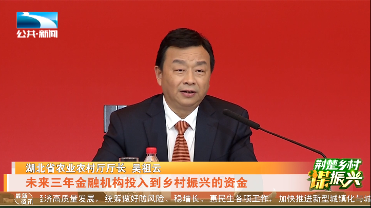 湖北省农业农村厅厅长 吴祖云:“在全国率先出台《乡村振兴促进条例》,研究制定乡村振兴‘21条措施’,去年全省新选派1.77万名村第一书记和1.2万支驻村工作队,我们与12家金融机构签署了战略合作协议,未来三年我们金融机构投入到乡村振兴的资金将突破两万亿,振兴基础不断夯实 。”