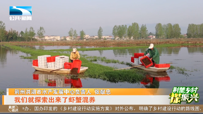 荆州洪湖市水产发展中心负责人 张献忠:“以往我们洪湖的农民大多都是专养,就是小龙虾,后期我们探索了虾稻共生这个模式,现在水质提升上来了,我们积极探索出了虾蟹混养,这样我们就有两块儿收入了,给农民带来了每亩将近2000块钱的增收,并且我们的品质有很大提升。”