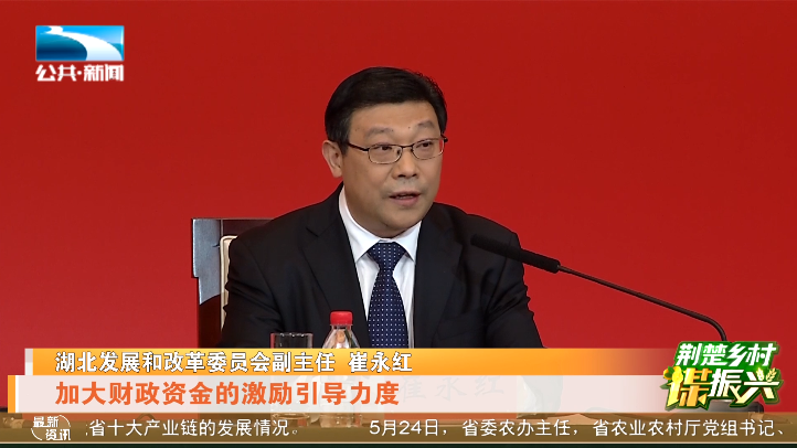 湖北发展和改革委员会副主任 崔永红:“下一步,聚焦十大重点农业产业链建设,加快提升我省农业产业集群式发展水平,强化试点示范,继续创建一批国家和省级农村产业融合发展示范园,强化政策供给,加大财政资金的激励,引导力度。”