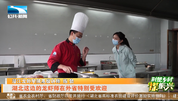 潜江龙虾学院高级讲师 陈勃:“湖北这边的龙虾师在外边特别受欢迎,目前在读的就业率是100%了,基本上没毕业,实习期就已经被预定了,出省的月薪都是一万块钱保底。”