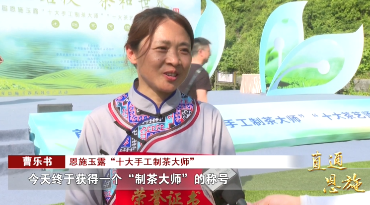 恩施玉露“十大手工制茶大师” 曹乐书:“三十年来做茶,今天终于获得一个‘制茶大师’的称号,对我来说是非常地荣幸,我将继续把恩施玉露的手工制作传承下去。”