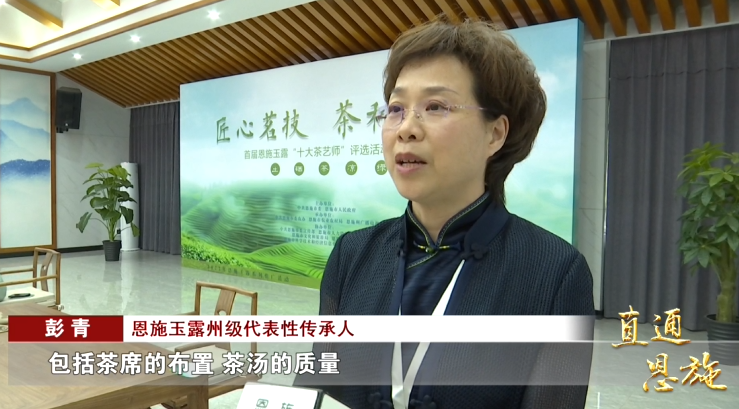 恩施玉露州级代表性传承人 彭青:“从整个比赛来说,包括茶席的布置、茶汤的质量都是非常好的,希望茶艺师们多参加这样的活动,提升整体的水平,推动我们恩施州茶产业的发展。”