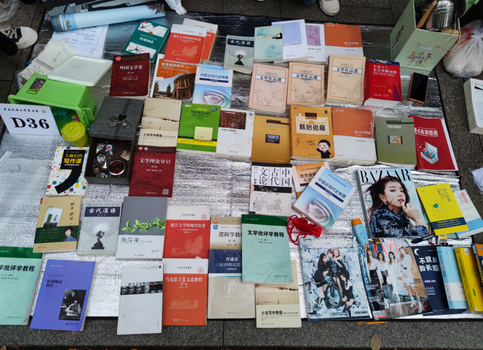 来自该校民族学与社会学学院的应届毕业生钟伏李,在现场开设了自己的摊位,销售专业相关的书籍和学习用品。“我每年都有关注跳蚤市场,这个活动可以让闲置资源流动起来。很有趣的是,有一些资源还会‘代代传承’,就比如今年我销售的一些书籍是我去年在跳蚤市场买入的。因为自己接触到很多咨询考研保研的学弟学妹,所以我就想着结合自己的经验,给学弟学妹们提供针对性的辅导。”作为已保研至复旦大学的学长,钟伏李还提供人文学科考研保研辅导的服务。