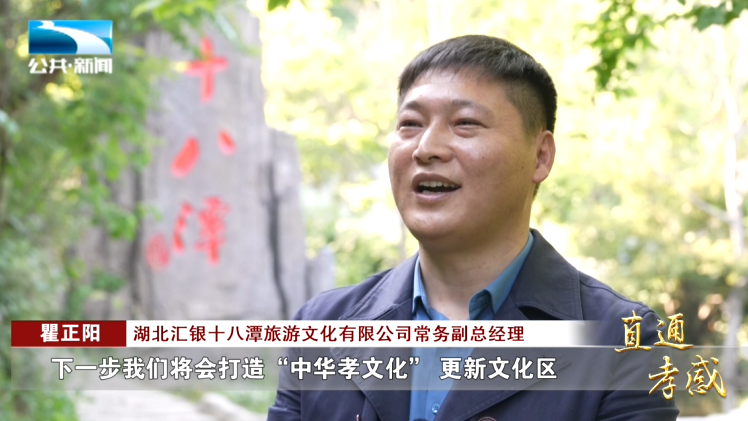湖北汇银十八潭旅游文化有限公司常务副总经理 瞿正阳:“下一步我们将会打造‘中华孝文化’,更新文化区,主要是满足市场上我们针对中小学生的研学,孝道文化的传播和传承,未来我们将把十八潭打造成为我们省内盛名、国内知名的生态型、综合型文旅度假景区。”