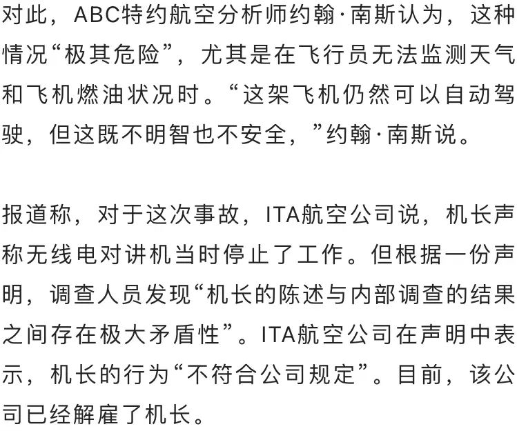 ABC:从纽约飞往罗马的飞机在地面上空3.8万英尺高时,据称机上2名飞行员都睡着了
