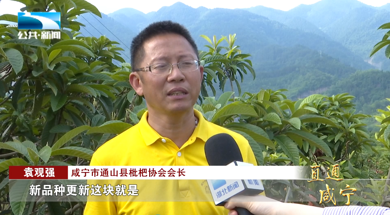 咸宁市通山县枇杷协会会长 袁观强:“新品种更新这块就是我们要建立自己的良种苗木基地,要政府大力推广我们自己育的新品种,第二个标准化这块我们就经常要参加培训,要给他们进行技术指导,做的那个标准园做示范推广作用,那基础设施啊、水啊、电啊。”