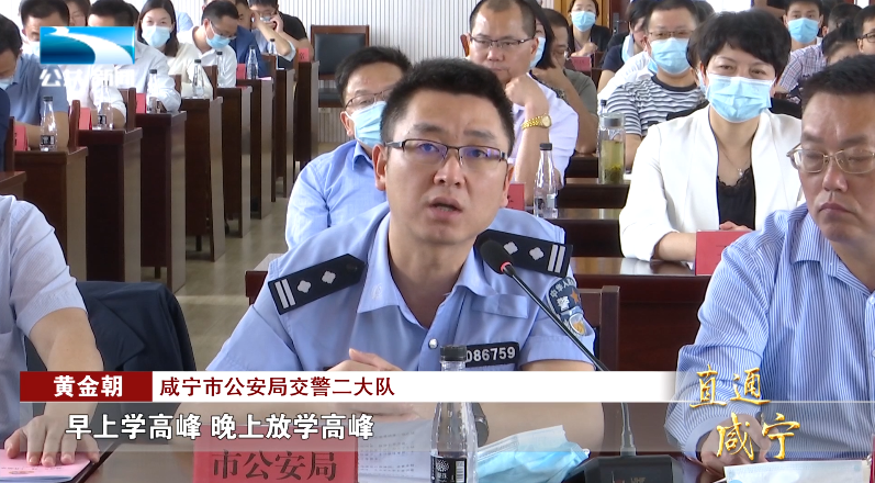 咸宁市公安局交警二大队 黄金朝:“纳入第一批实施项目里面去,早上学高峰、晚上放学高峰,安排两名民辅警,现场维护。”