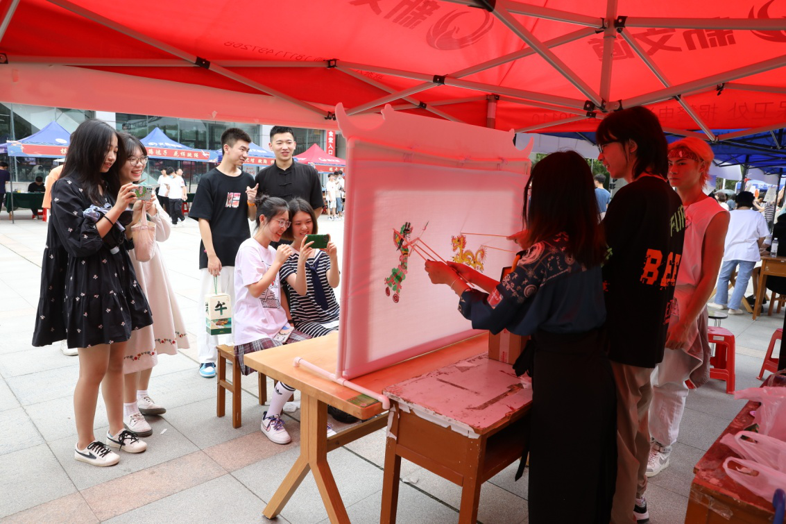 一出由该校拟之声配音社同学演出的皮影戏《哪吒闹海》,专业配音和默契配合引得观看者拍手叫绝。不少同学忍不住走到幕后,体验一把皮影操作,与朋友即兴演出,嬉笑恣意间,台前幕后变成一片欢乐的海洋。此次演出剧本编辑、金融智能2001班的刘乃瑜告诉记者:“我们在传统故事的基础上对《哪吒闹海》进行了现代化改编,将文化传承与现代生活有机结合,成为本次演出的一大亮点。”她希望同学们能尽情感受“皮影戏”这一世界级非遗的民俗古趣,喜爱并弘扬这一千年传统文化。
