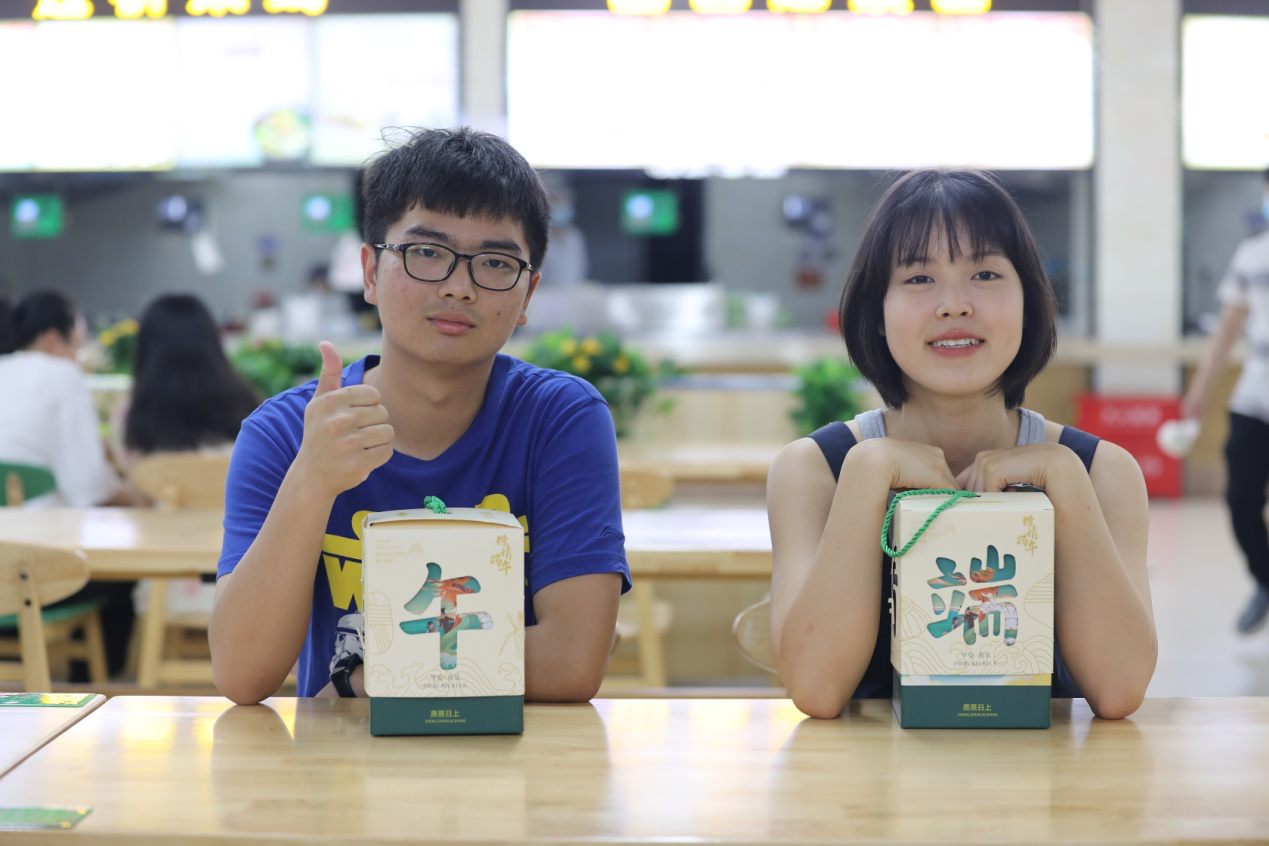 “彩缕碧筠粽,香粳白玉团。”端午食粽是中国人沿袭千年的习俗,咬上一口粽子,过节的仪式感也随之而来。领粽窗口,同学们有序排队,凭券领取。粽子和咸蛋均由食堂精心采购、烹制包装,美味又放心。
