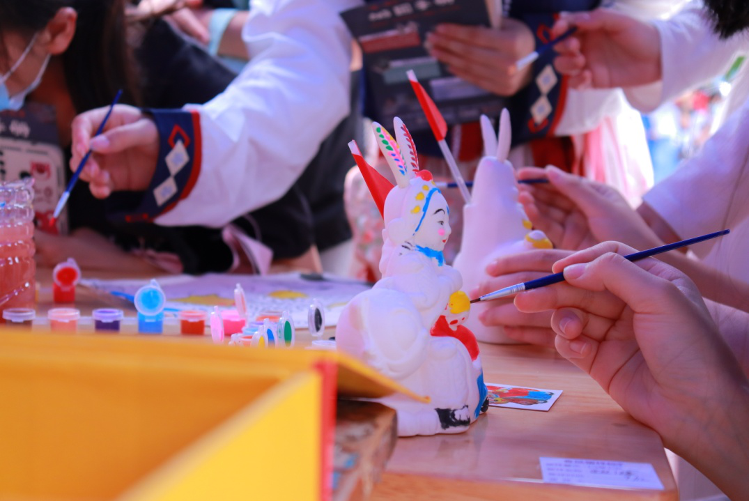 现场,师生们轮番体验书法纂刻、茶艺、泥塑彩绘、风筝、抖空竹等活动项目,让非遗文化真正在首义校园里“活”起来、“热”起来。
