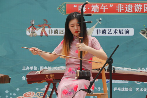 中午12点30分,由该校图书馆和校团委主办的“嗨·端午”非遗游园会正式开幕,非遗展览、非遗艺术展、非遗文化体验、非遗课堂,丰富的传统文化活动,让学生近距离感受传统文化的博大精深和无穷魅力。