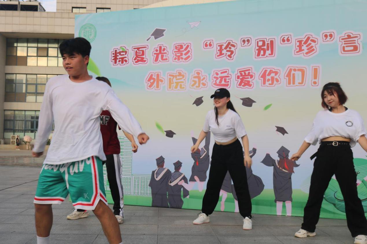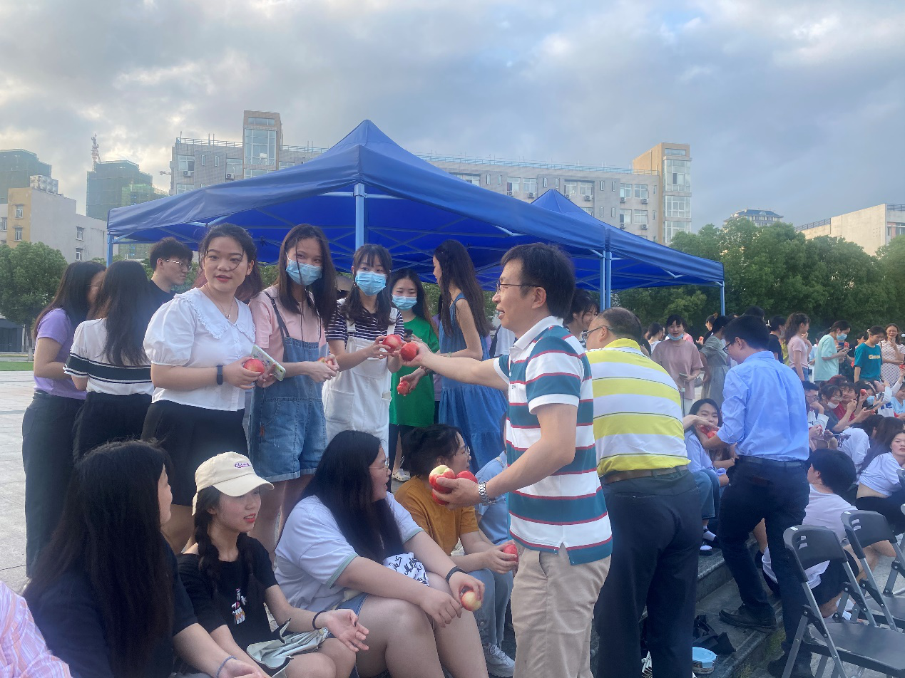 在2022届毕业班辅导员庞珍老师看来,美味的红桃绿李传递学成的欢乐,深情的欢送歌舞寄托离别的思绪。她说:“聚是一团火,散作满天星。愿外语2022届毕业学子铭记学校、学院的爱和祝福,永葆心中的激情与热爱,奋勇奔赴下一片山海,在青春的赛道上跑出当代青年的最好成绩!”