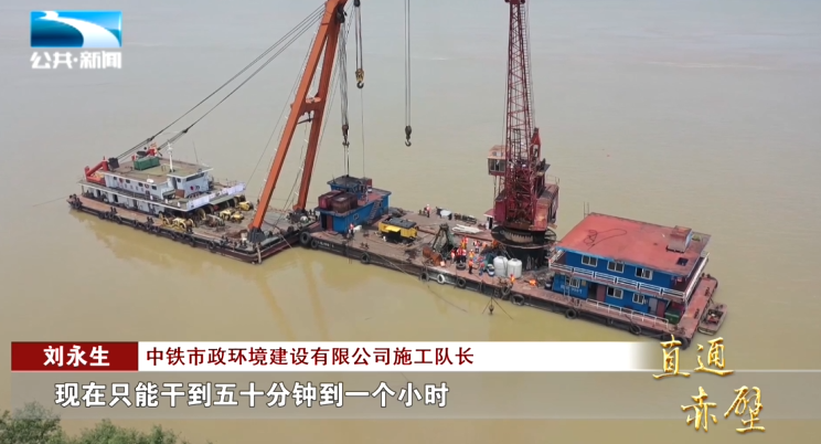 中铁市政环境建设有限公司施工队长 刘永生:“过去是老码头,老码头下面全部是石头,现在我所有的潜水人员全部在下面清理石头,把石头清理完了以后我们就安装管线。”
