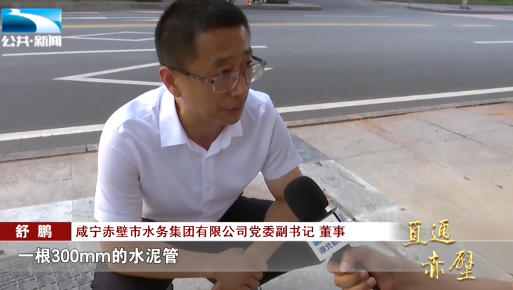 咸宁赤壁市水务集团有限公司党委副书记、董事 舒鹏:“以前那边小区来水的主管道是从河北大道那边接过来的一根300mm的水泥管,我们考虑到那个管子一个是远端,第二个是压力比较小、流量也不够,我们考虑从这边600mm的主管上面开个口过去,看看能不能给他们解决问题。”