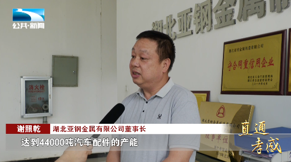 湖北亚钢金属有限公司董事长 谢照乾:“达到44000吨汽车配件的产能,我们准备花5年时间达到10万吨的产能,翻一番。”