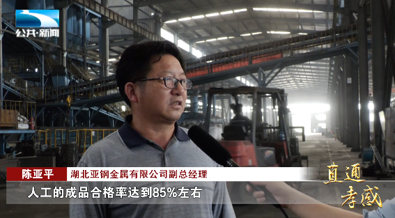 湖北亚钢金属有限公司副总经理 陈亚平:“这个流水线,如果说要人工大概要80人,我现在只要9个人。与人工相比,流水线上的成本合格率可以达到98%以上,人工的成品合格率达到85%左右。”