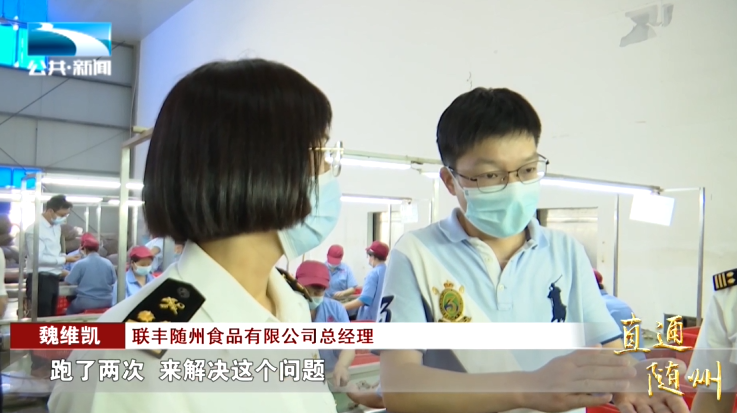 联丰随州食品有限公司总经理 魏维凯:“从原材料和我们生产加工方面,给我们提出了解决方案,跑了两次来解决这个问题,最后我们的产品得以在端午节前,顺利通关、顺利出货。”