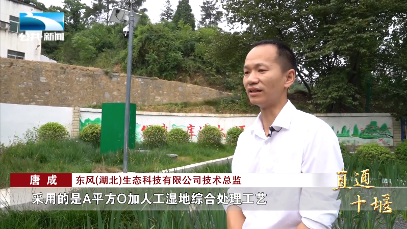 东风(湖北)生态科技有限公司技术总监 唐成:“我身后的这座污水处理站,采用的是A²O加人工湿地综合处理工艺,其处理能力每天10吨。像这样的污水处理站布局,是根据人口的密集程度进行布局的。以茅塔乡为例,现在有30多座像这样的污水处理站,已实现了茅塔乡的污水全收集全覆盖。”