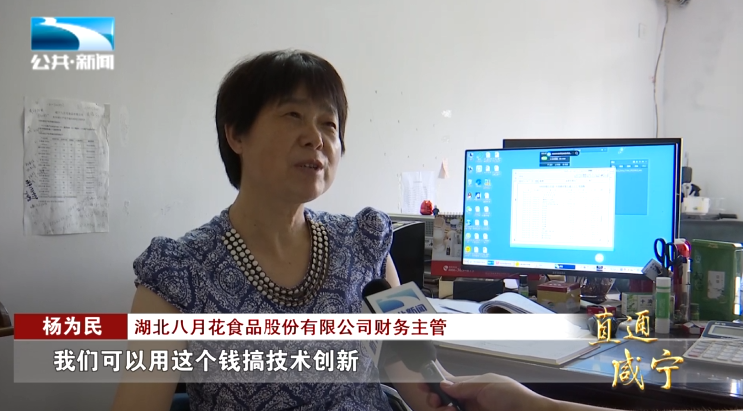 湖北八月花食品股份有限公司财务主管 杨为民:“我们还不知道,老板通过问才知道是这个钱到账了,我们可以用这个钱搞技术创新、设备改造、研发产品。”